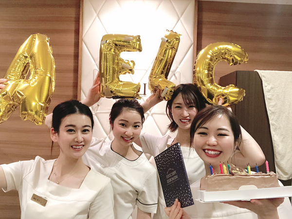 | 待遇・福利厚生 | ・担当接客手当 ・所属店舗手当 ・役務消化手当 ・新規対応手当 ・特別勤務手当 ・時間外勤務手当 ・育成手当 ・責任者手当 ・交通費支給(月額20,000円まで) ・お弁当支給(アシスタント期間は除く) ・社会保障完備(雇用・労災・健康・厚生年金) ・社員旅行(全額会社負担) ・社員割引制度 ・優秀社員表彰制度 ・産前産後休暇制度 ・育児休暇制度 ・独立支援制度など |